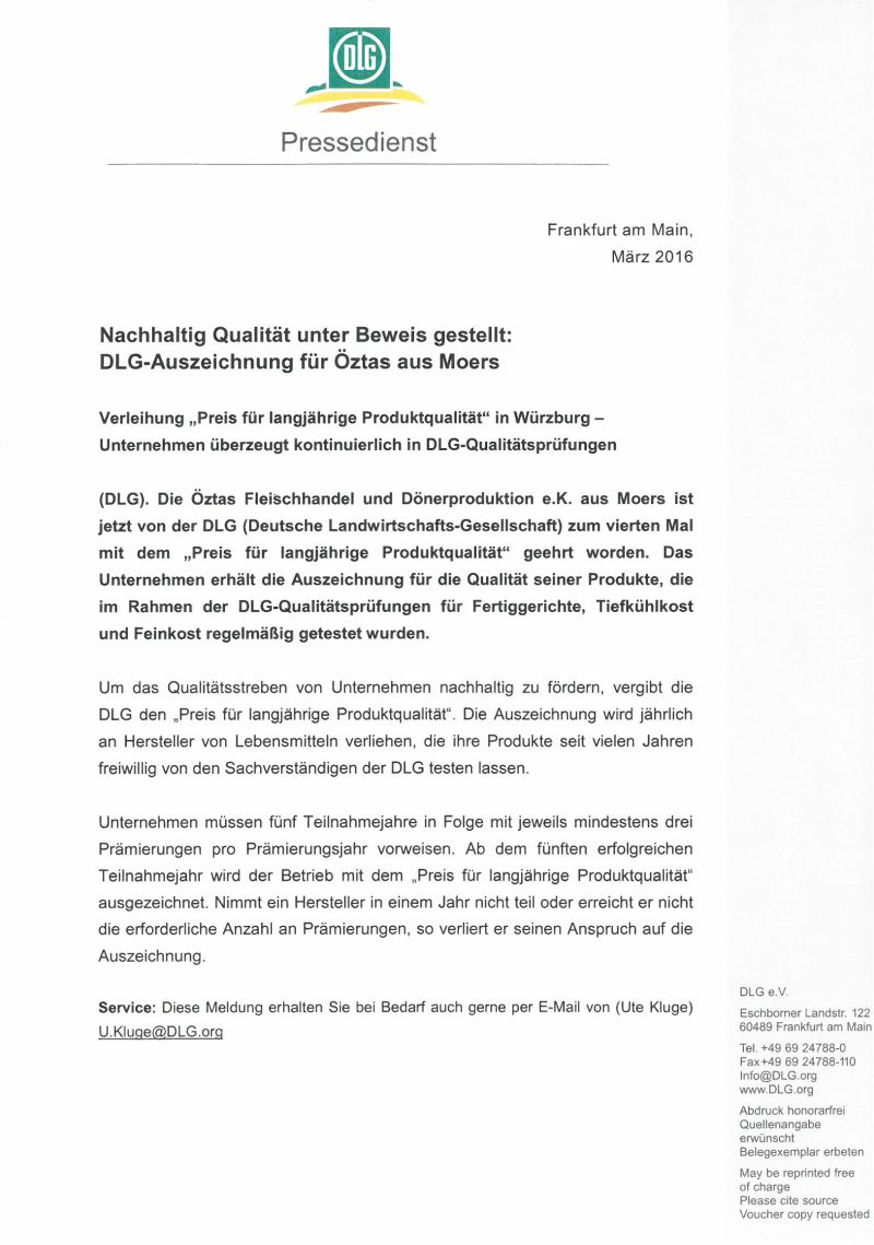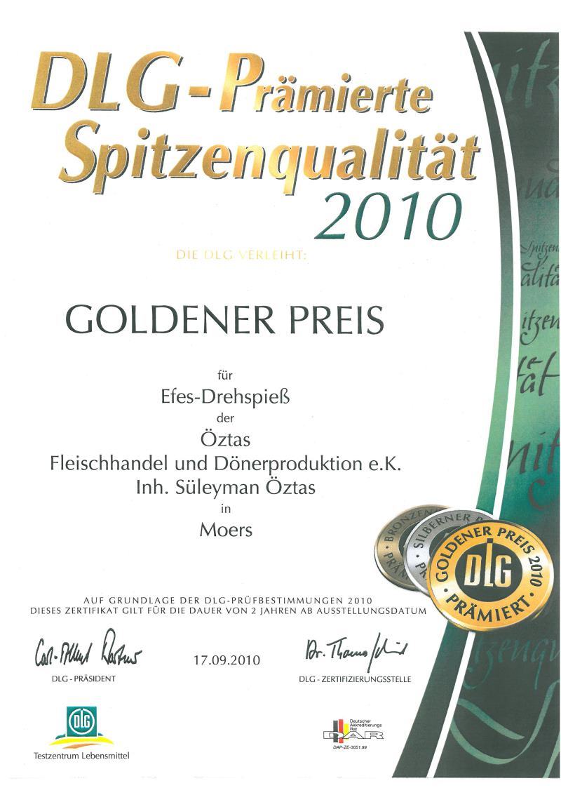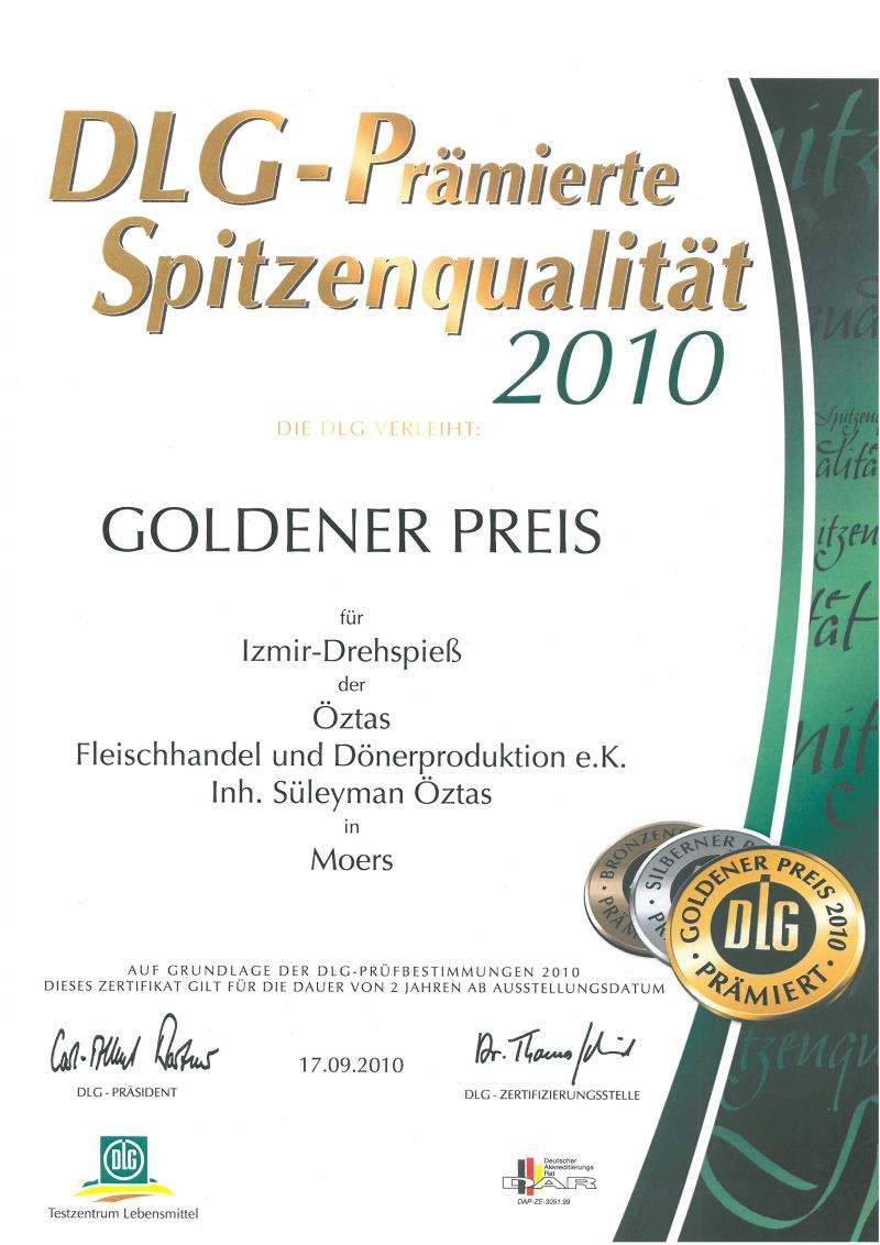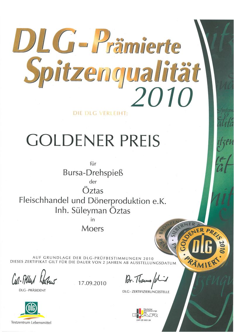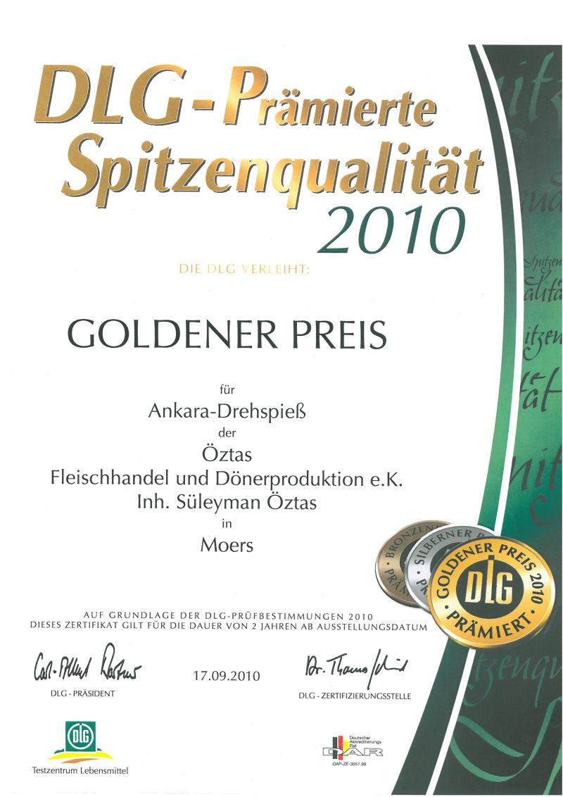 Parce que le commerce de la viande et la production de la société OZTAS kebab. e.K. atteint chaque année, le nombre maximal de points qu'ils ont reçu un certificat et la plus haute récompense, le groupe CMA-étiquette.