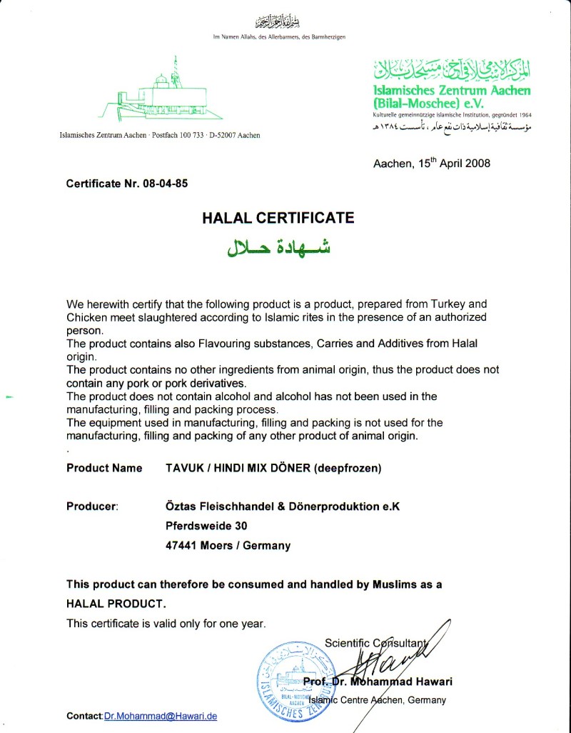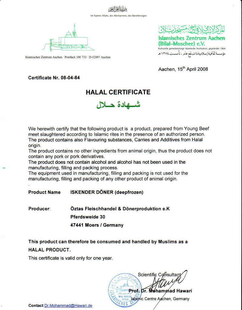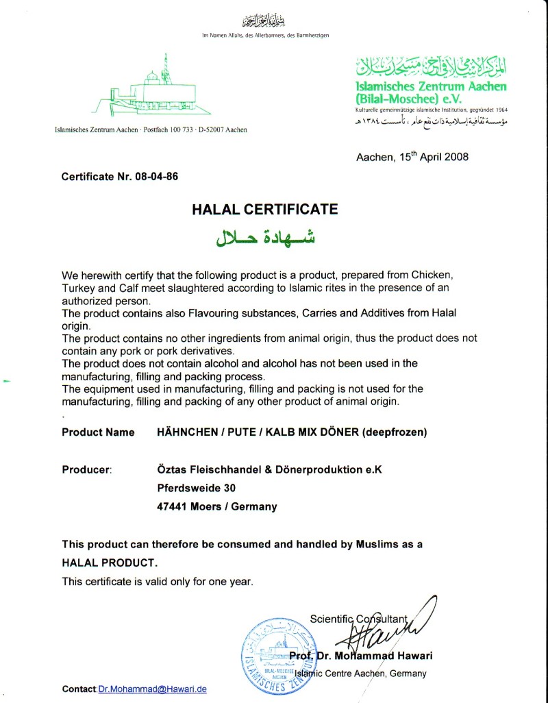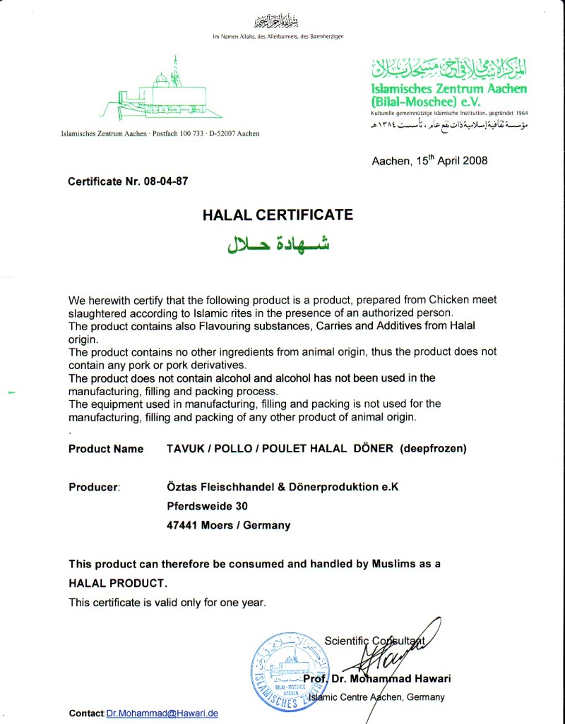 Öztas Dönerproduktion - Produits Halal
