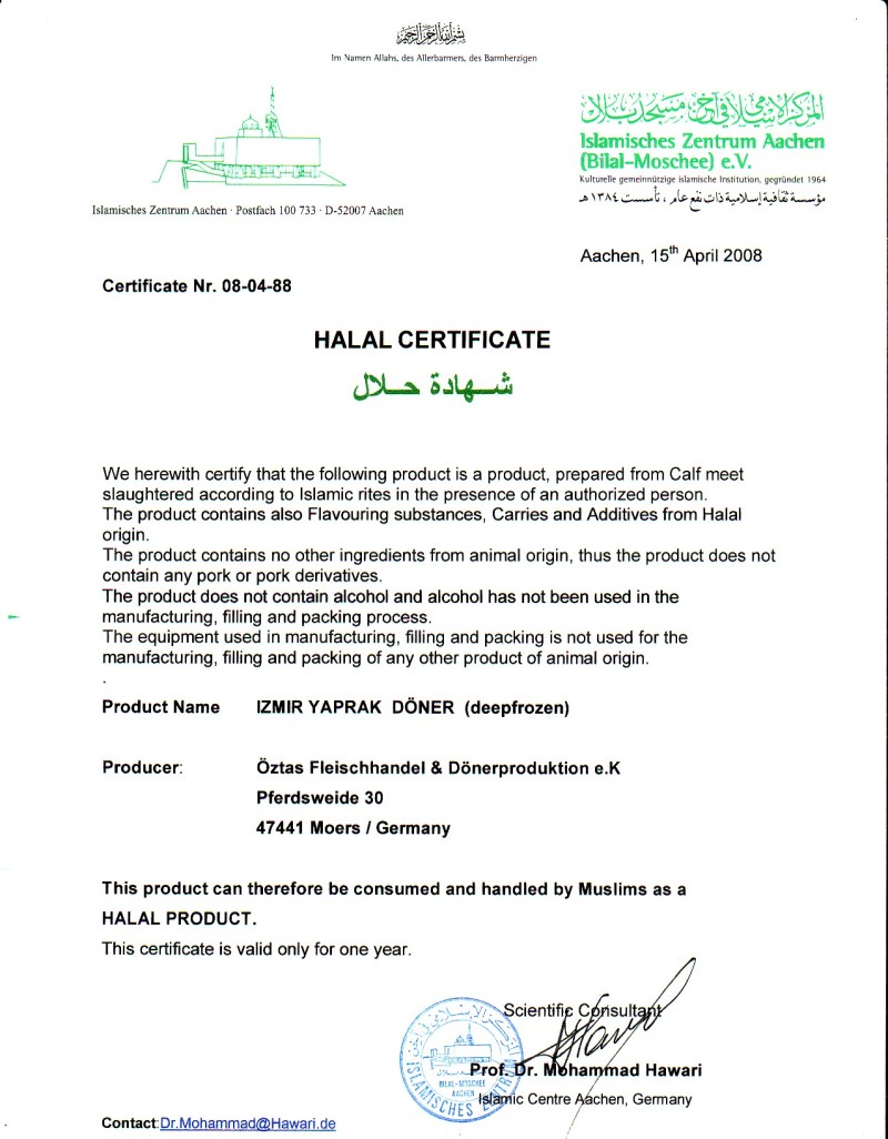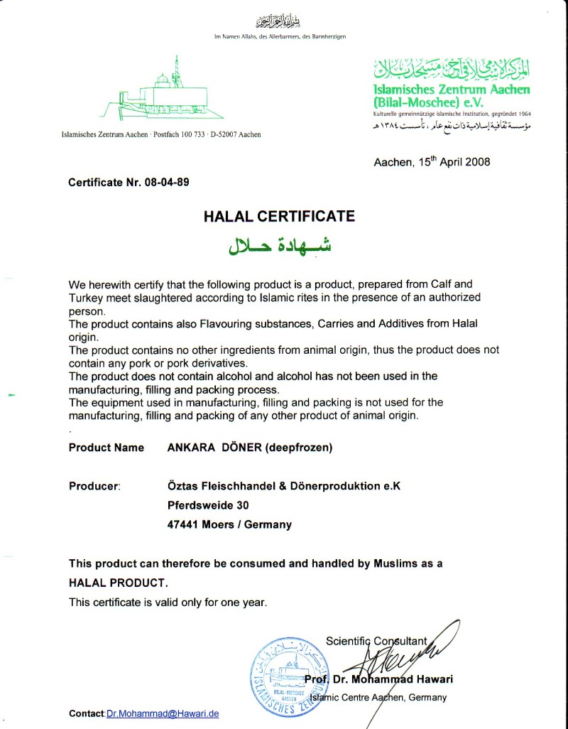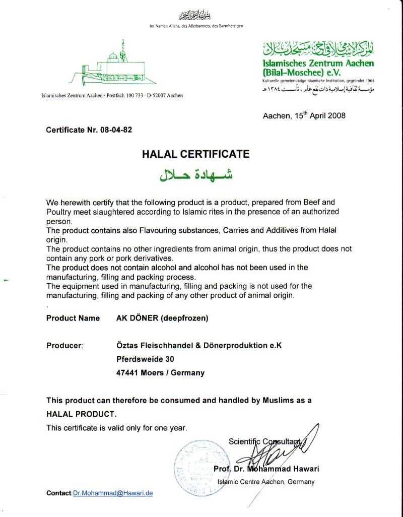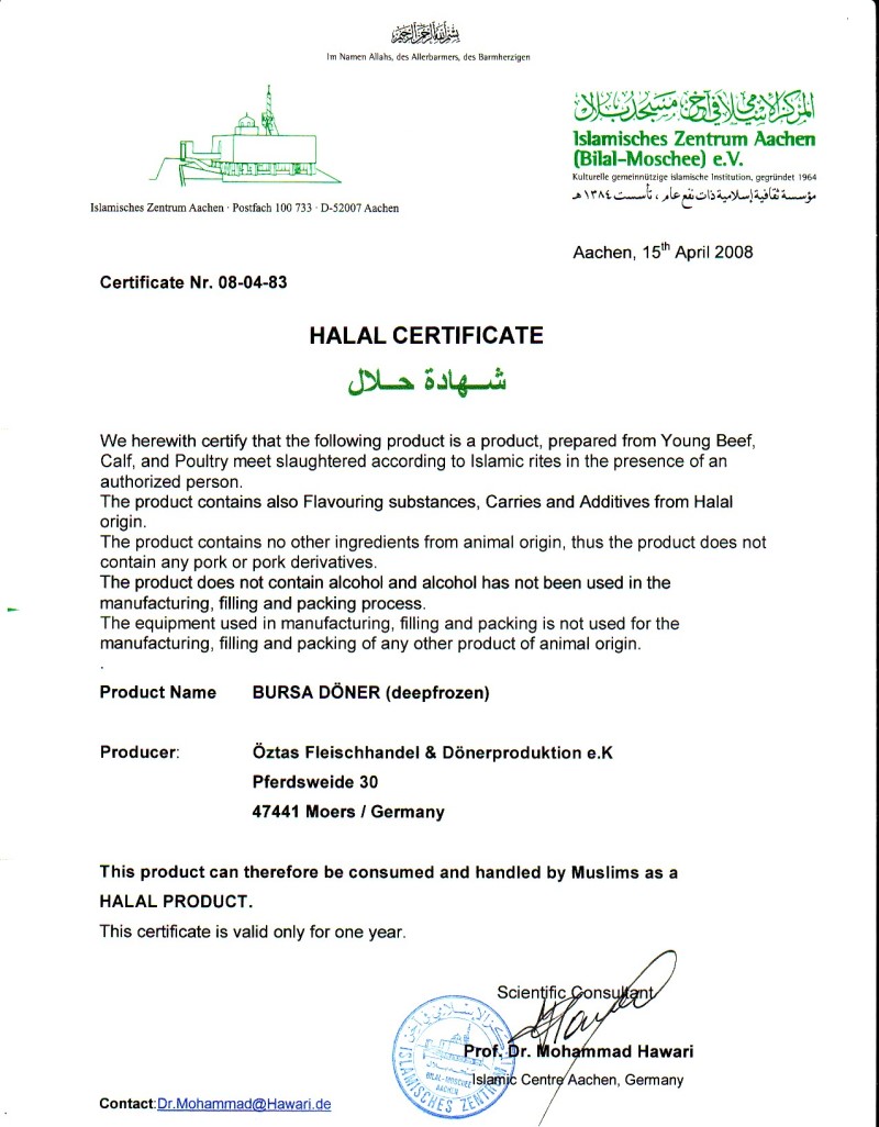 Öztas Dönerproduktion - Produits Halal